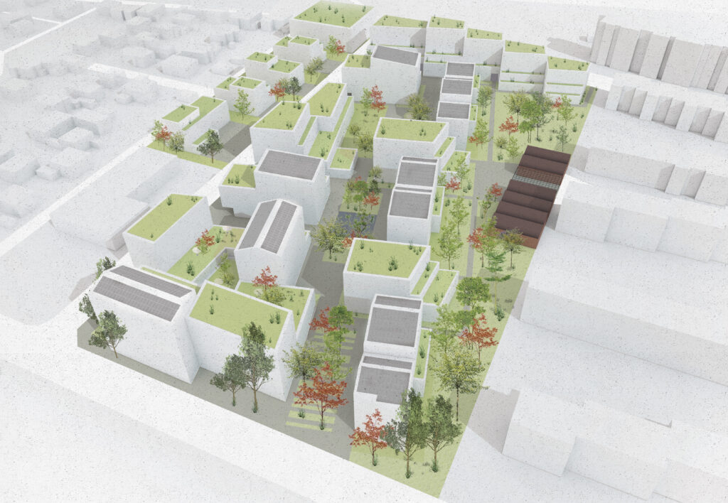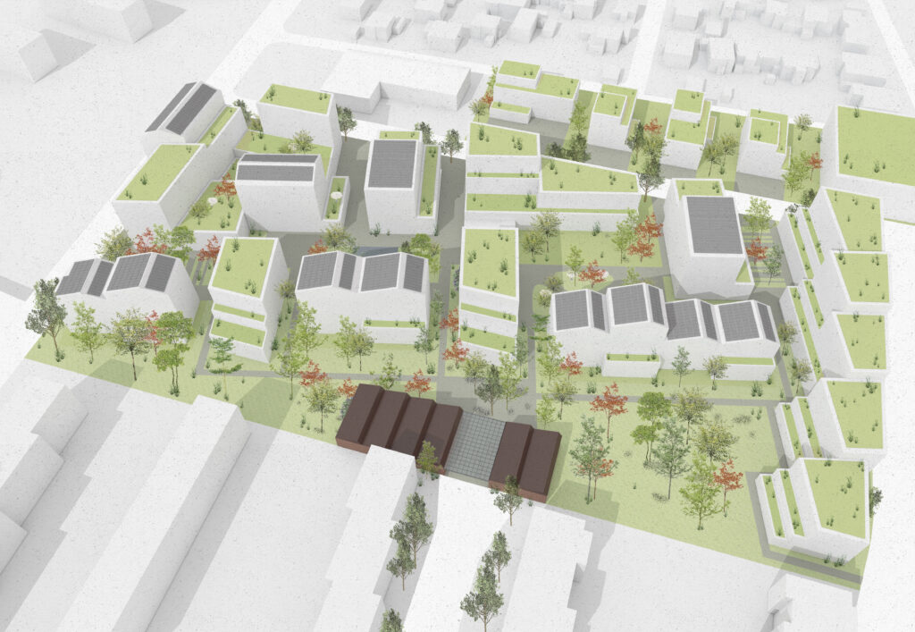 In Düsseldorf-Flingern wird ein neues lebenswertes urbanes Quartier mit einer Nutzungsmischung aus verschiedenen Wohnenformen, Gewerbe, Einzelhandel und Nahversorgung für das gesamte Wohnviertel, Gastronomie entwickelt. Unter den Gebäudekörpern wird großflächiger Parkraum – via Quartierstiefgarage – vorhanden sein.